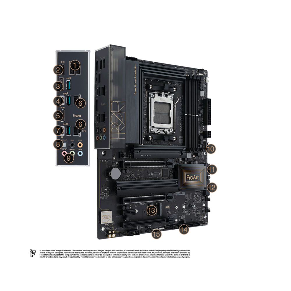 ارتقِ بإبداعك وتجميعاتك الاحترافية مع ASUS PROART B650-CREATOR، اللوحة الأم المصممة خصيصًا للمبدعين وصناع المحتوى الذين يبحثون عن الأداء والاستقرار مع أحدث التقنيات. تأتي هذه اللوحة بمقبس AM5 لدعم أحدث معالجات AMD Ryzen™ 7000 Series، مما يمنحك قوة معالجة عالية لتشغيل تطبيقات التصميم، المونتاج، والألعاب الاحترافية.