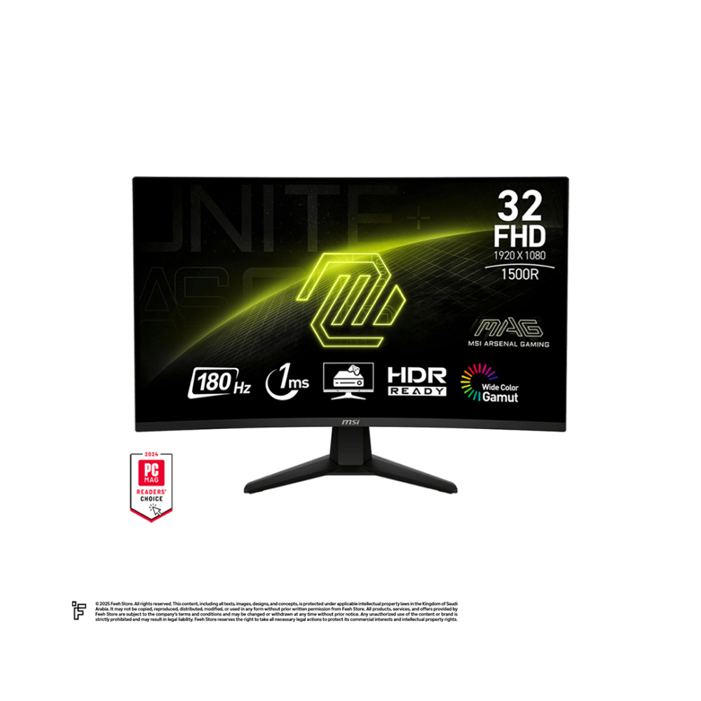 شاشة MSI MAG 32C6X مقاس 32 FHD وتحديث 180 هرتز واستجابة 1 مللي ثانية منحنية