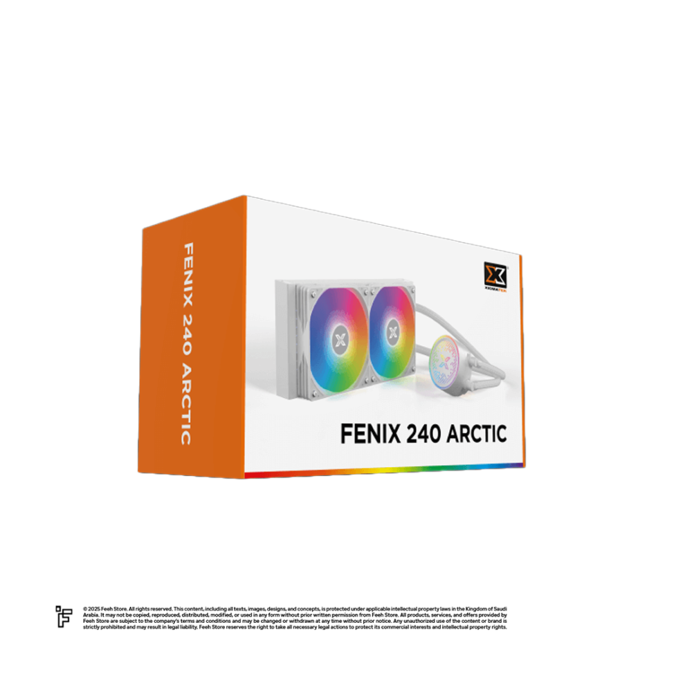 يقدم مبرد FENIX 240 Arctic أداءً فائقًا وتصميمًا أنيقًا باللون الأبيض ليتناسب مع تجميعات الـPC الاحترافية. يتميز هذا المبرد السائل برادياتير 240mm عالي الكفاءة مع مروحتين PWM لضمان تدفق هواء قوي ومستقر، مما يحافظ على درجات حرارة المعالج منخفضة حتى أثناء جلسات اللعب الطويلة أو المهام المكثفة مثل التصميم والمونتاج.