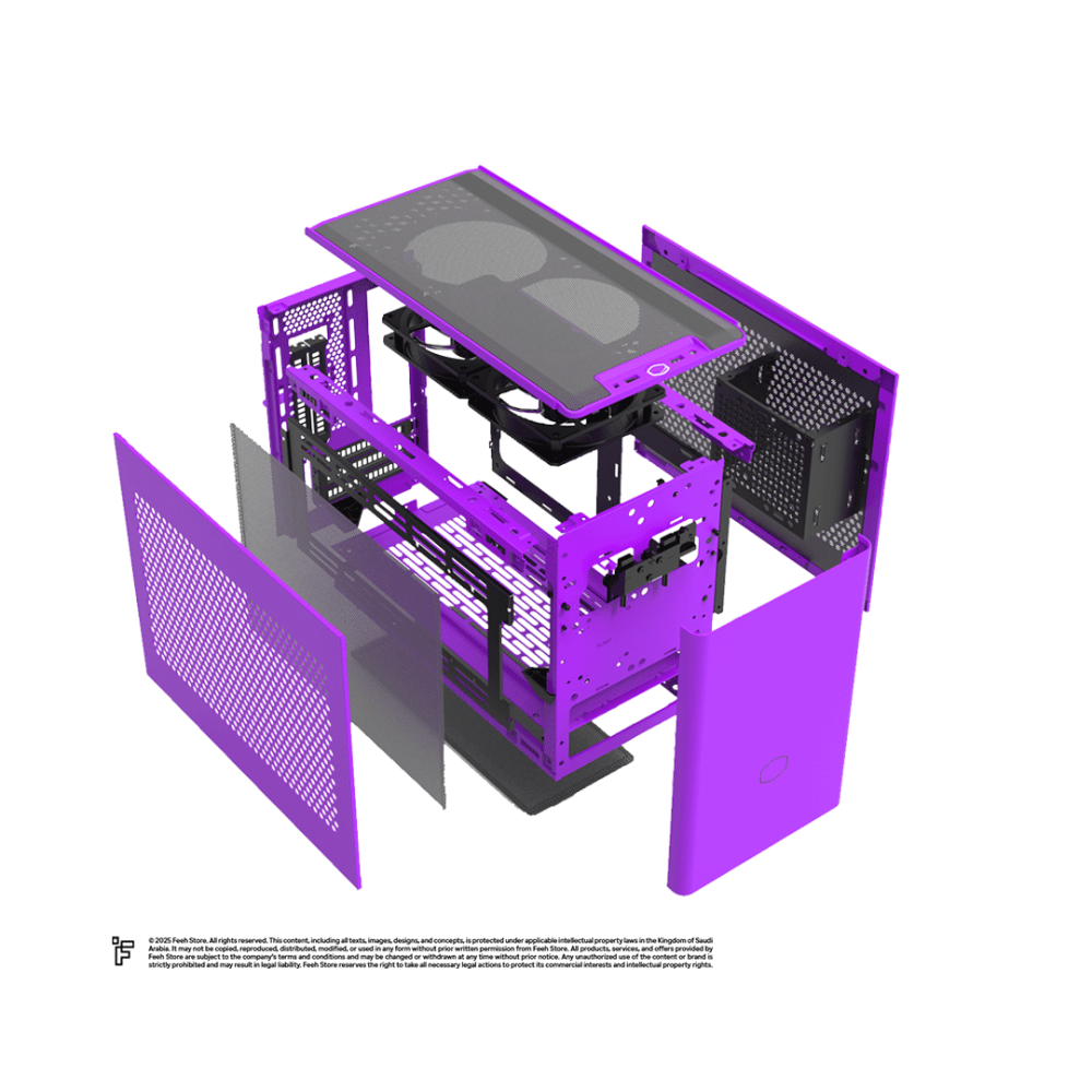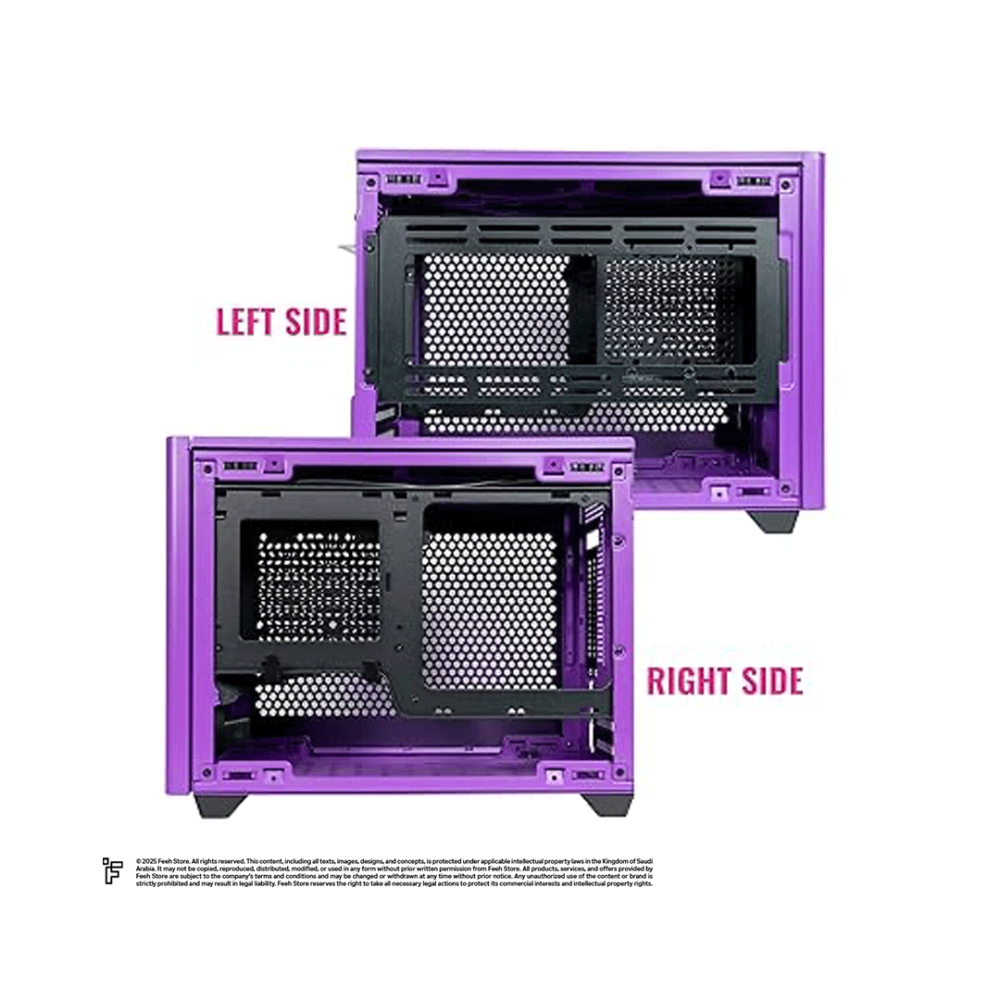 بفضل حجمه الصغير وتصميمه البنفسجي الجذاب وإمكانياته الكبيرة، يعد MasterBox NR200P Purple خياراً مثالياً لبناء أجهزة ألعاب أو محطات عمل صغيرة الحجم بأداء قوي ومظهر فريد.