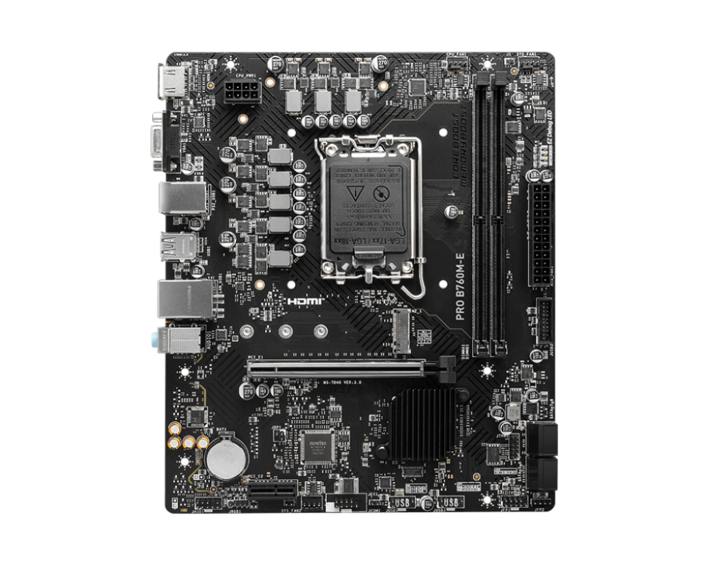 تتميز مذربورد MSI PRO B760M-E بالقدرة على دعم معالجات إنتل كور الجيل الرابع عشر/ الثالث عشر/ الثاني عشر، كما توفر دعماً واسعاً للذاكرة وتوافقية مع PCIe 4.0 وخيارات توصيل متعددة، وهذا يجعلها الخيار الأفضل لبناء أجهزة الألعاب، وأجهزة العمل، وأجهزة تحرير الوسائط المتعددة.
