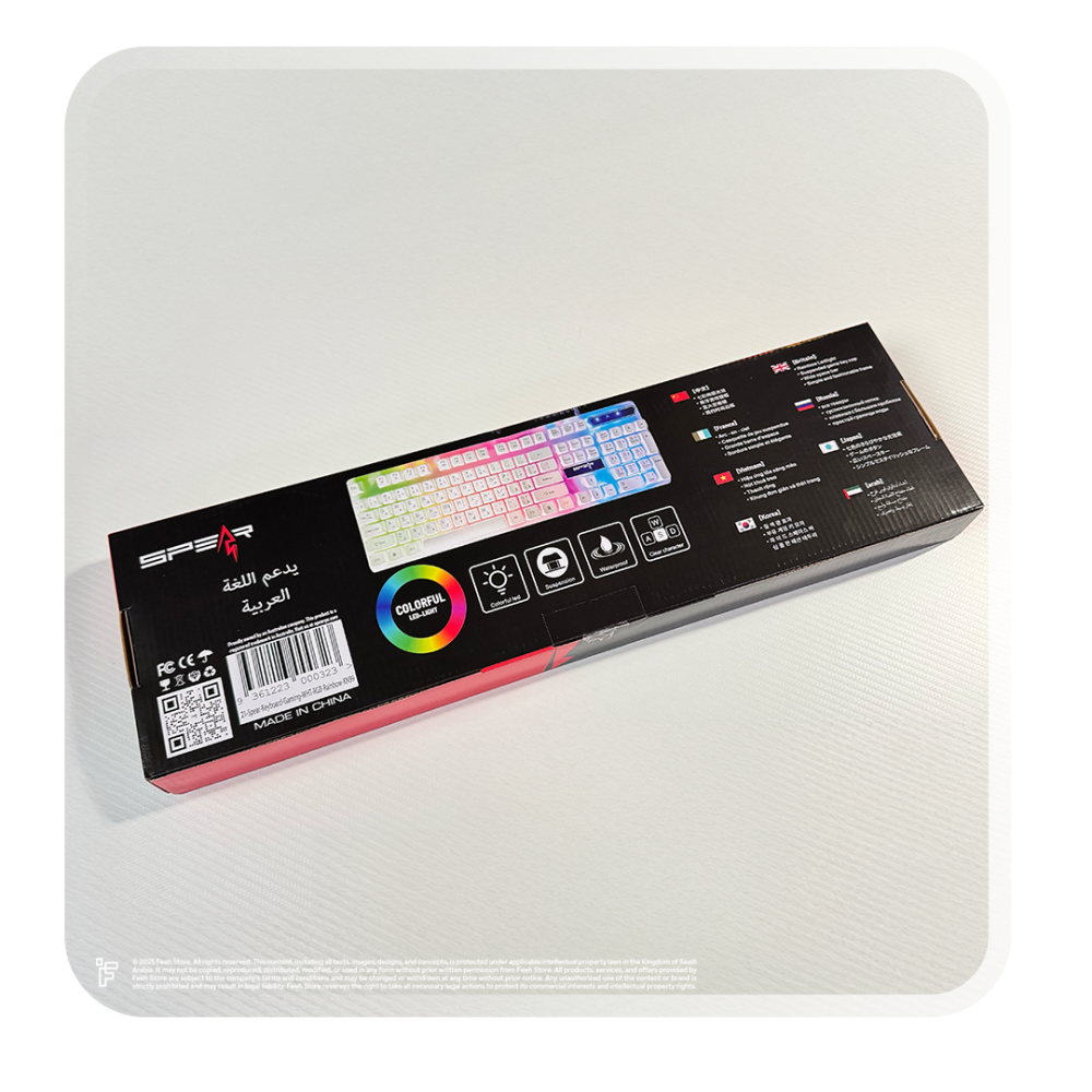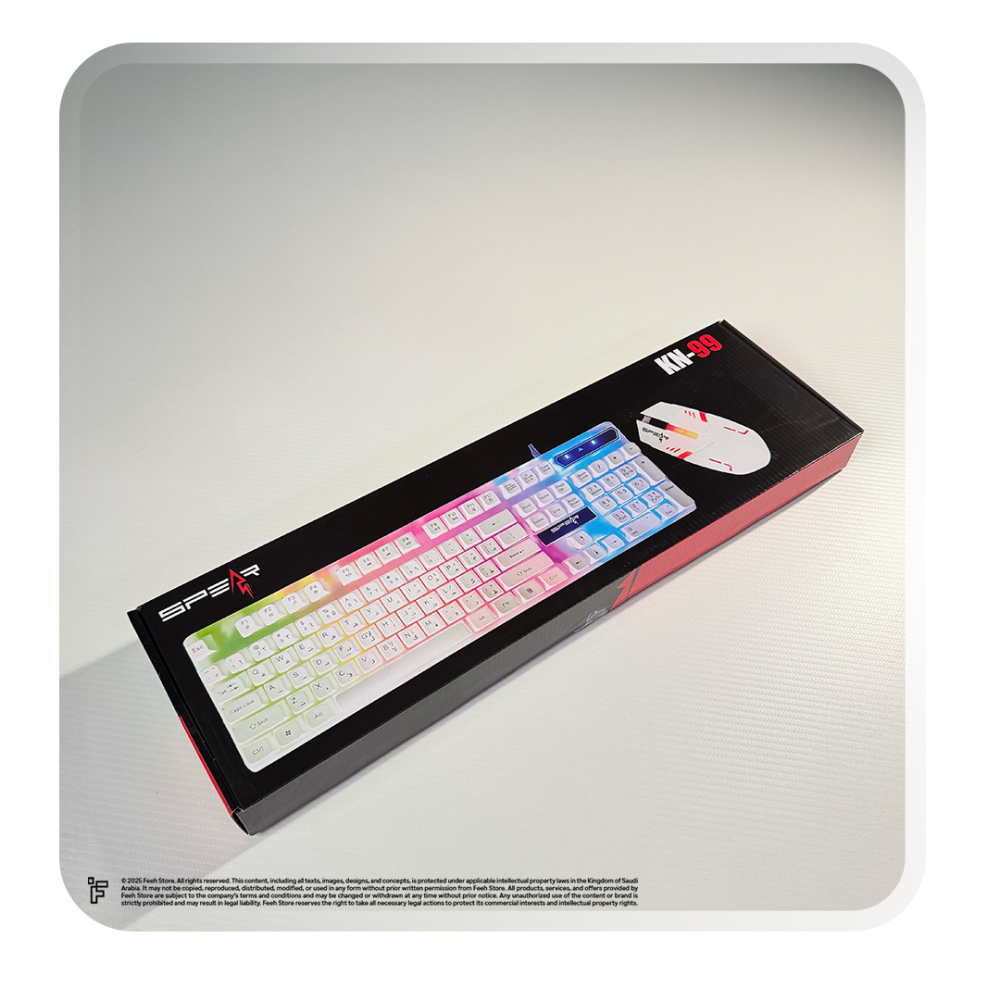 باختصار، كيبورد SPEAR-21 White RGB Rainbow KN99 يقدم لك التصميم الجذاب، الأداء العملي، والمتانة العالية، ليكون خيارك المثالي لتجميعات الألعاب الاحترافية والمكتبية.