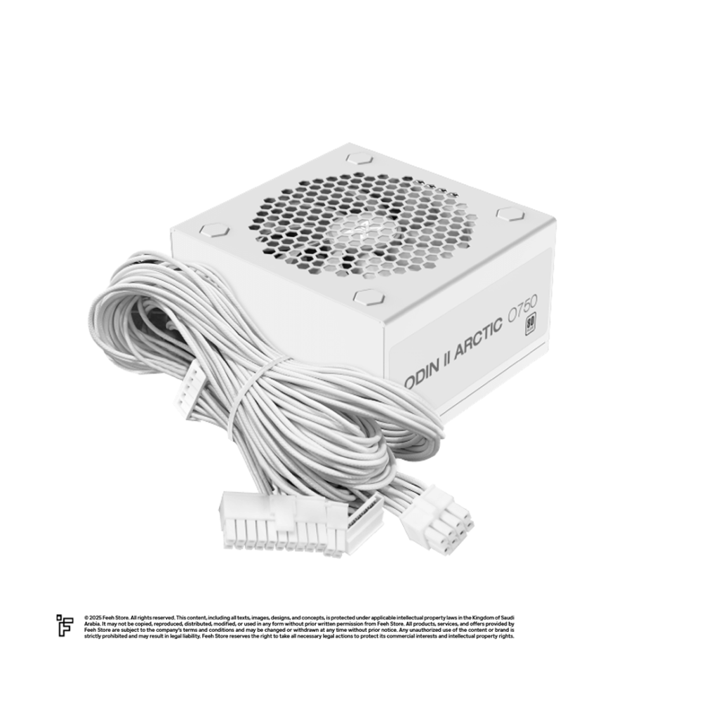 The Odin II Arctic 750W is SASO certified, which means it adheres to regional safety and efficiency standards, making it a reliable and secure choice for users in the Middle East. It also comes with a high-quality SASO-approved power cord for safe and efficient operation.